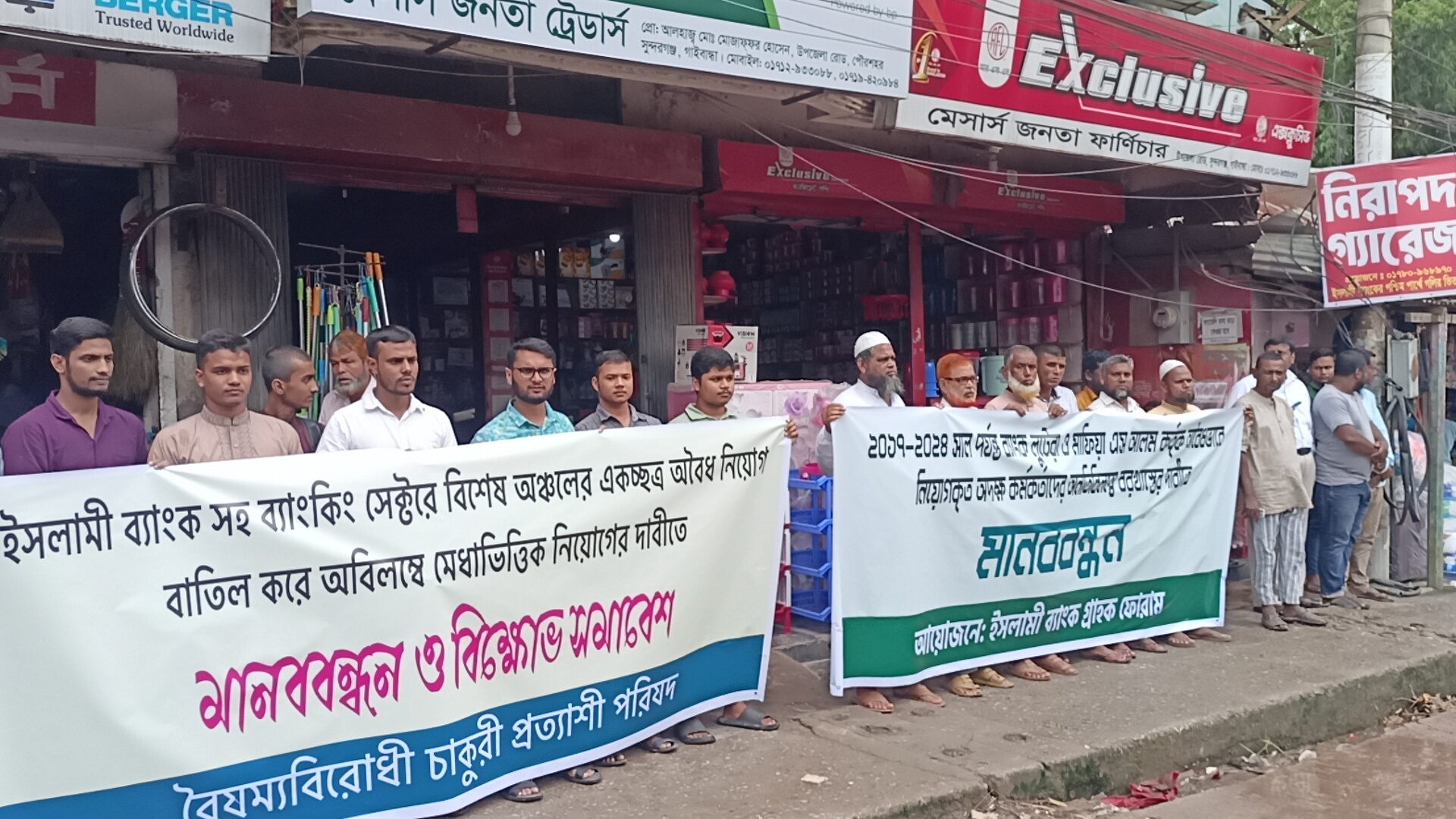 ইসলামী ব্যাংকে অবৈধ নিয়োগ বাতিলের দাবিতে সুন্দরগঞ্জে মানববন্ধন